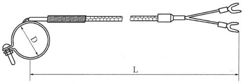 WRNT-04 series Hoop type thermocouple Application of temperature measurement in pipe wall, the clamping device clamps or hoop, without welding can be heat plate and pipe temperature probe pressure welding has the advantages of convenient disassembly, sensitive, and reliable measurement of shock compression. Is the common use of natural gas, petroleum chemical industry, power plants and other industries products.